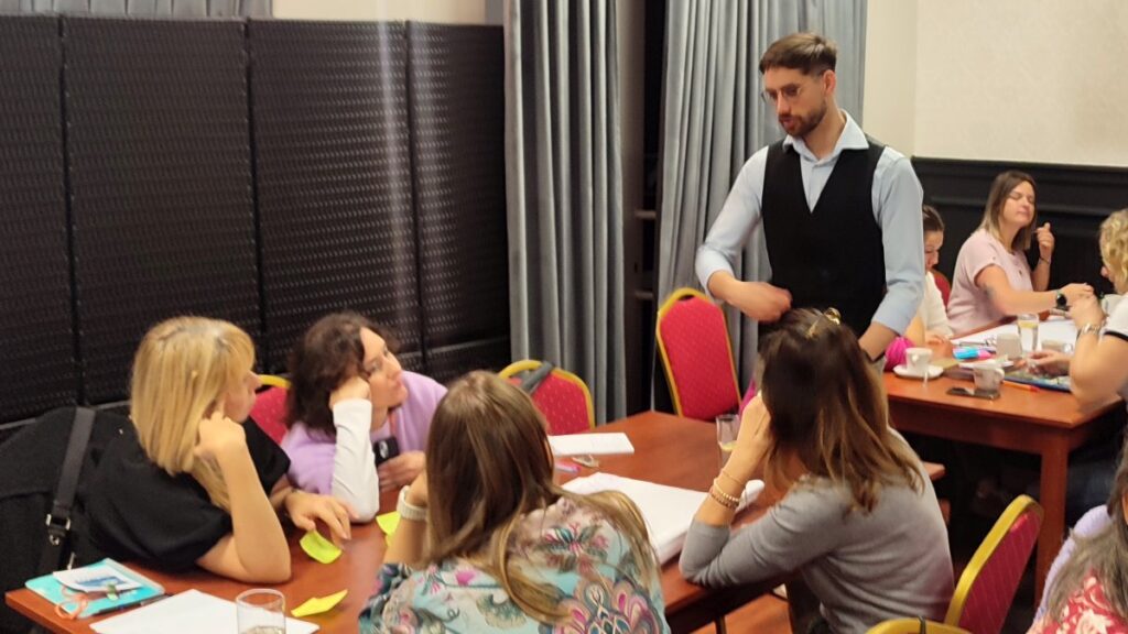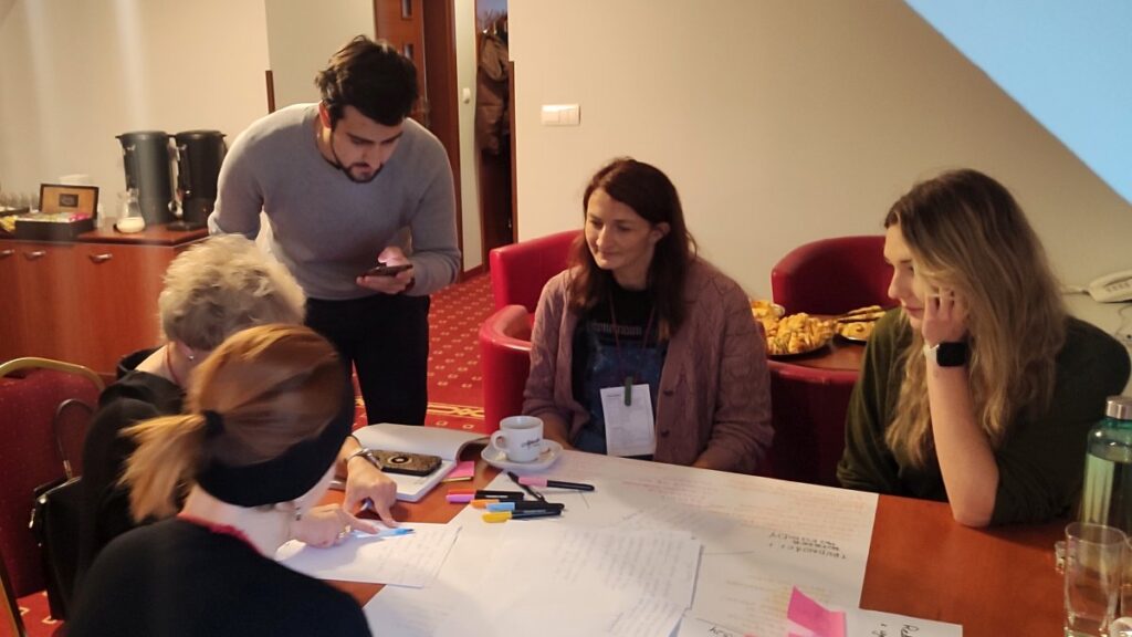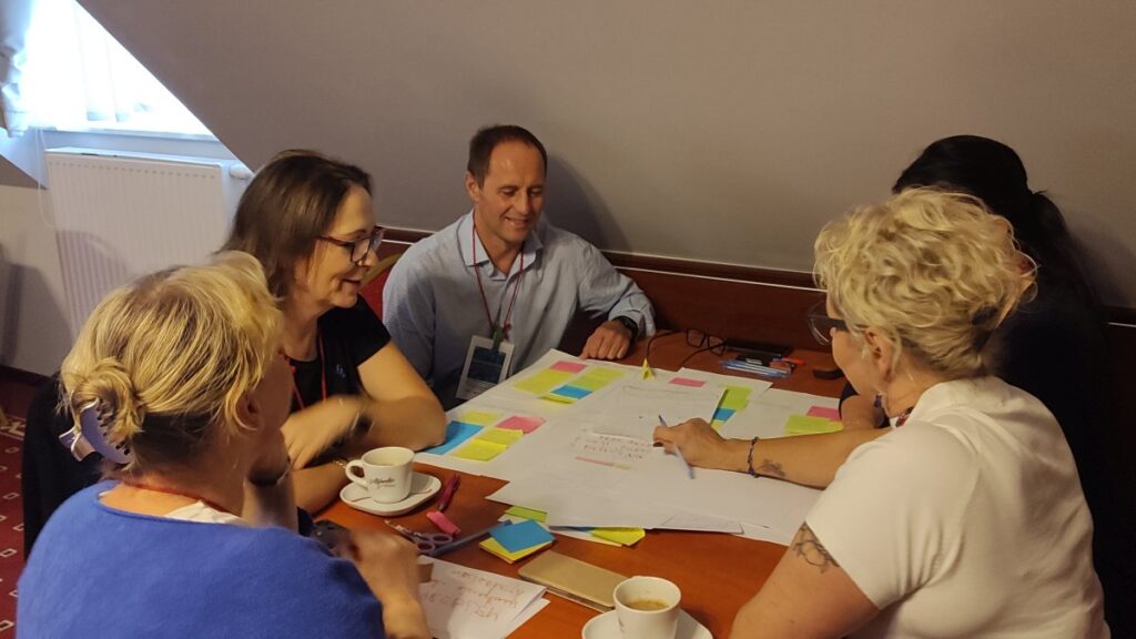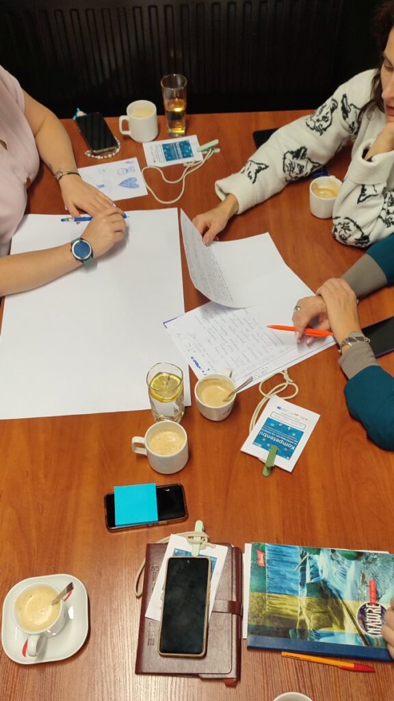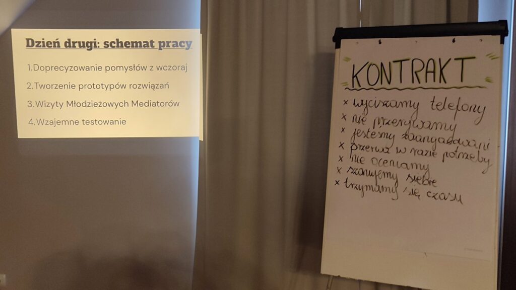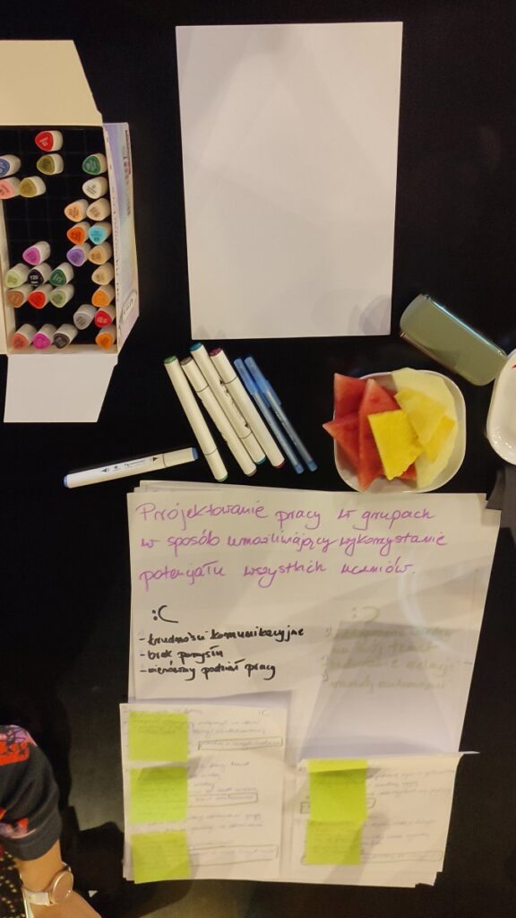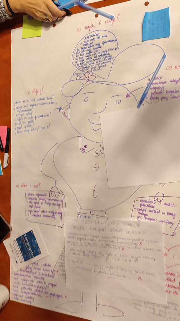 Drugi intensywny dzień spotkań z ekspertami „Kompetentni w zmieniającym się świecie”. Nauczyciele projektowali rozwiązania służące rozwijaniu kompetencji miękkich uczniów i uczennic szkół ponadpodstawowych. Wspierali ich młodzieżowi eksperci – mediatorzy rówieśniczy z ZSO nr 14 w Zabrzu – VIII Liceum Ogólnokształcące wraz z koordynatorką Panią Agnieszką Beldzik. Podczas warsztatów, jak w mediacjach, w jednej przestrzeni spotkały się dwie perspektywy – dorosłych i młodzieży.